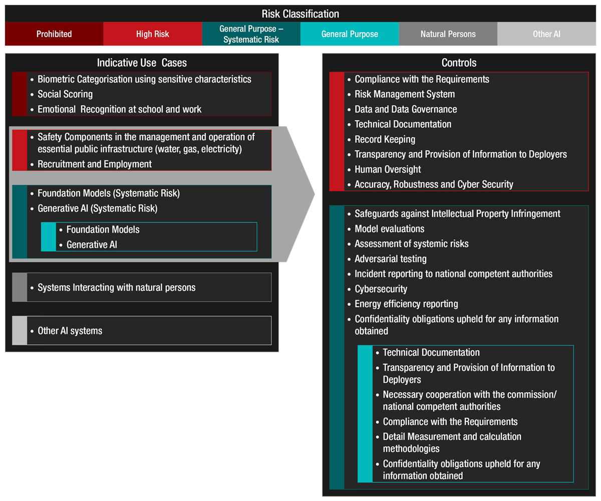 This framework allows for a nuanced regulatory approach, tailoring requirements to the potential harm an AI system might cause.