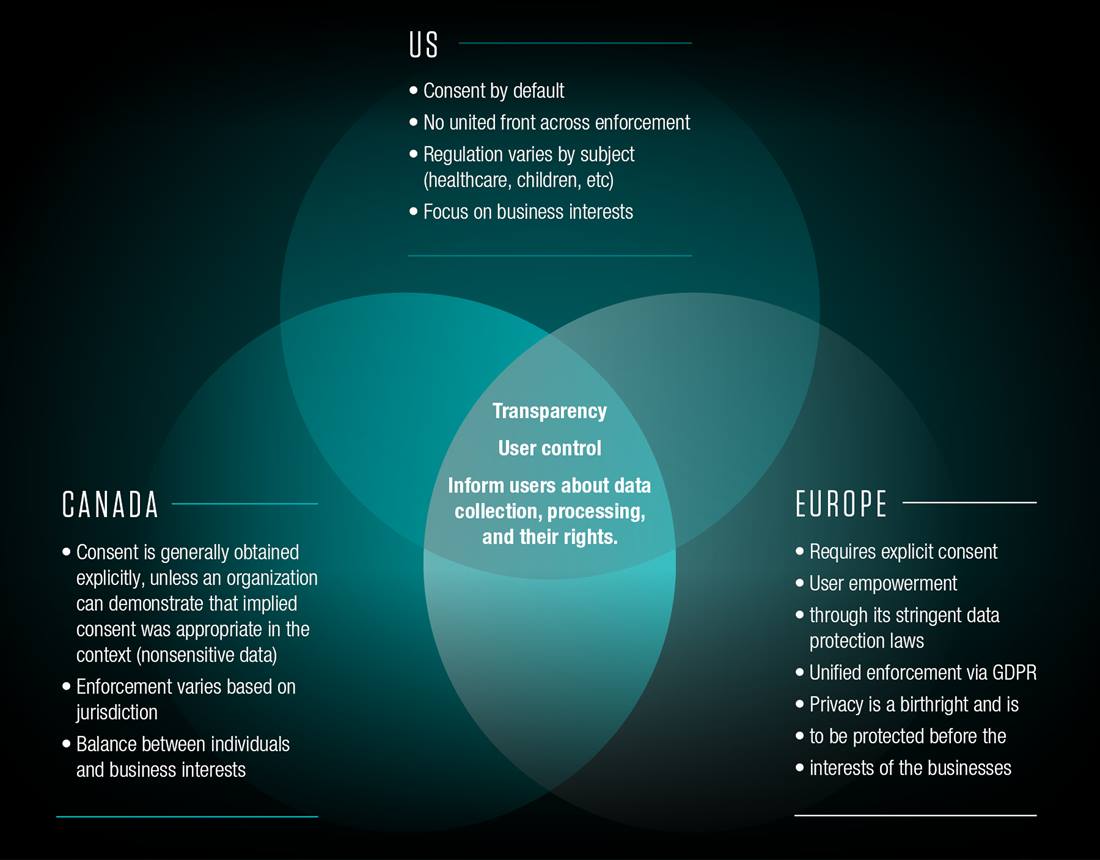 However, differences arise around implementation elements driven by regional legal requirements and cultural expectations. Europe’s GDPR sets a high bar for explicit consent and stringent data protection measures, nudging Privacy UX design toward greater transparency and control. Canada’s PIPEDA, while emphasizing similar principles, may differ in implementation and enforcement in comparison.